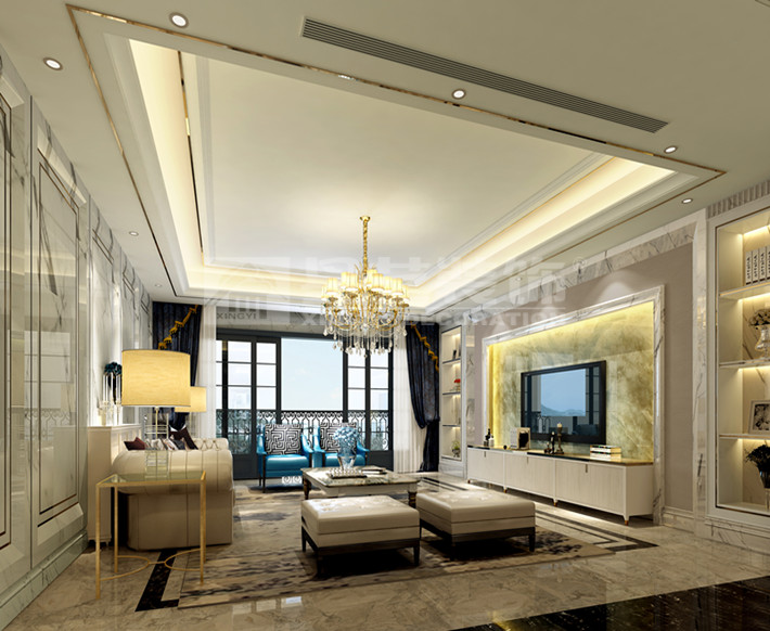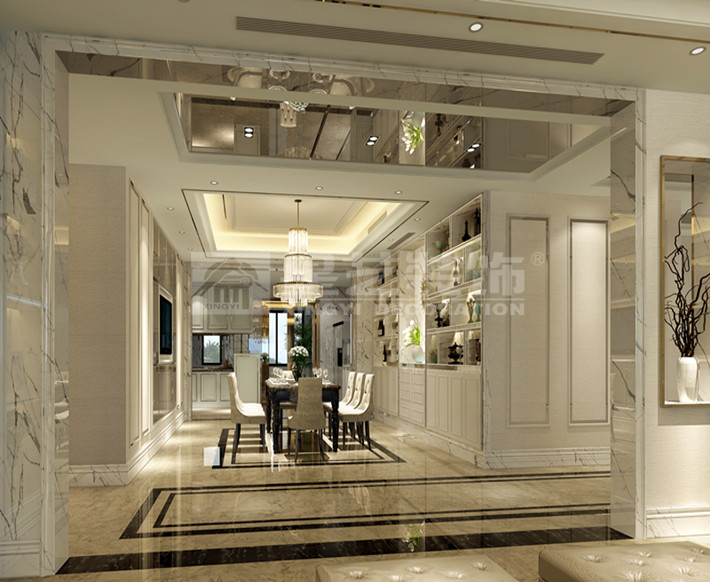 此案为高层大复式单元,做的是简欧风格,白色大理石搭配白色家私,完美营造低调奢华气质。
