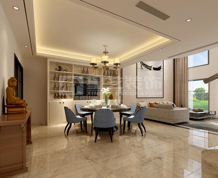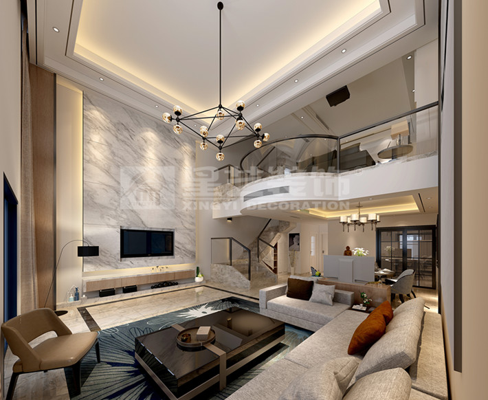 此案为现在代简约风格,三层叠墅,运用爵士白大理石做挑空大厅背景,凸显整个家的轻奢之气。