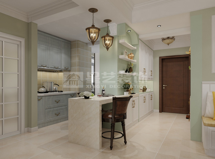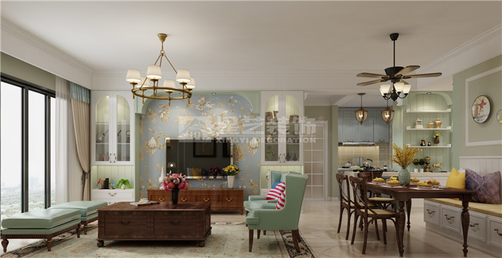 业主是工业学院的老师,家庭是属于那种书香门第,很多家人都移居美国,所以经常去美国旅游,对于美国那种休闲放松的居家环境很是喜欢,所以设计了一套贴近自然的田园风。