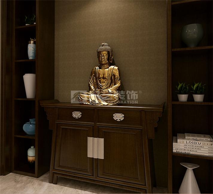 中式风格典雅端庄,给人以一种很稳重的感觉。加上枯木工艺品和佛像的点缀,更彰显出文化的沉淀。