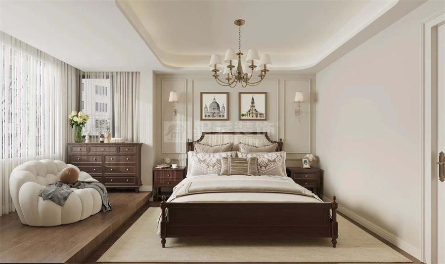 现代美式风格还注重时尚与精致的平衡。设计师会运用现代设计手法,如简洁的线条、利落的几何形状等,来提升空间的时尚感。同时,精致的装饰细节也是不可或缺的,如复古的挂钟、精美的壁画、别致的台灯等,这些都能为空间增添一份精致和品味