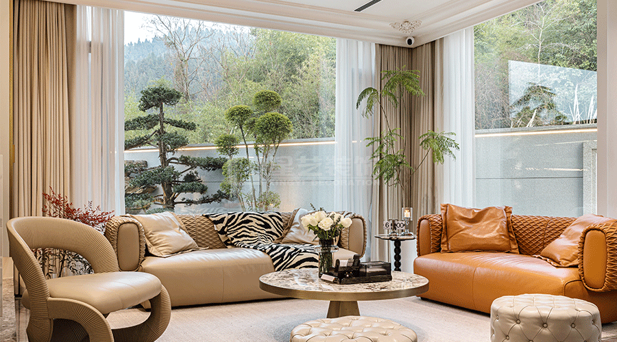 本设计以 “自然渗透生活,艺术赋能空间” 为核心,通过建筑与自然的对话、材质与美学的碰撞,打造兼具奢雅质感与人文温度的当代居所。