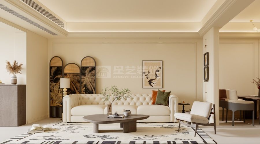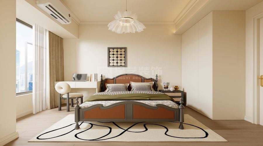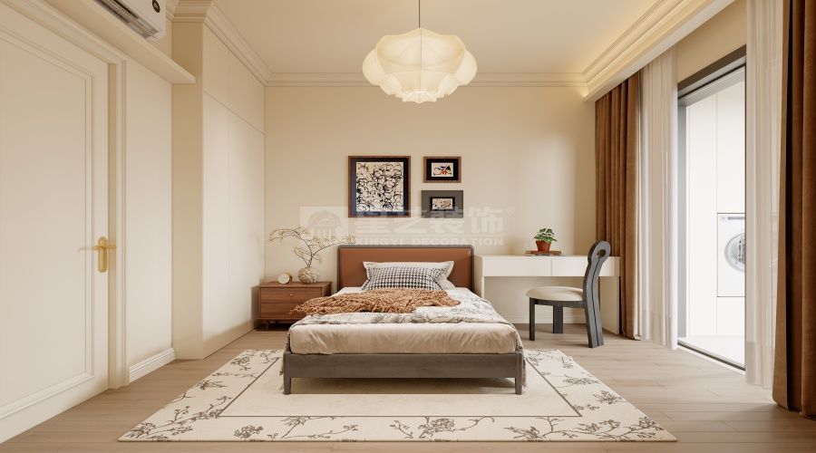 - 材质:墙面采用奶油色艺术漆,地面铺设浅木色地板;软装选用棉麻床品、肌理感地毯,增强温润质感。
