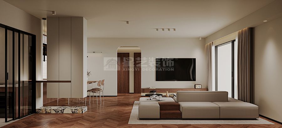 全屋采用“封闭柜+开放格”的组合:大面积隐形柜藏起杂物,开放格则展示装饰或常用物品(如书房的悬浮柜、餐厅的壁龛),既保持视觉整洁,又让空间多了呼吸感与生活痕迹。