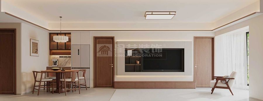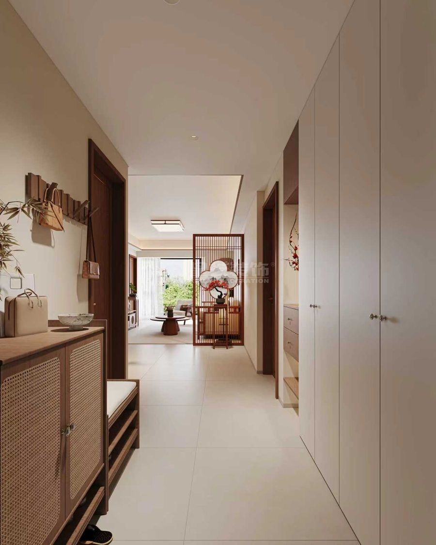 以中国传统美学(如宋式的雅致、明清的形制)为底色,剥离繁复装饰,保留线条、意境等核心元素(如空间中的木质格栅、水墨挂画),适配现代生活的简洁审美。以“留白”“雅致”传递东方生活的松弛感,通过材质(木、棉麻)、光影(柔和灯光)、陈设(花艺、文玩)营造“闹中取静”的精神场域,而非单纯的风格符号。