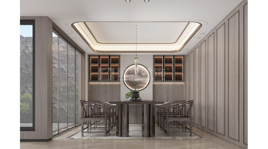 藏显东方意境,以现代笔法续写传统。取白墙黛瓦之韵,化繁为简;引天光庭院入室,四季生息。开放布局打破边界,木与石朴质对话,器物留白中见山水精神。最终归于当代生活的从容与温暖。