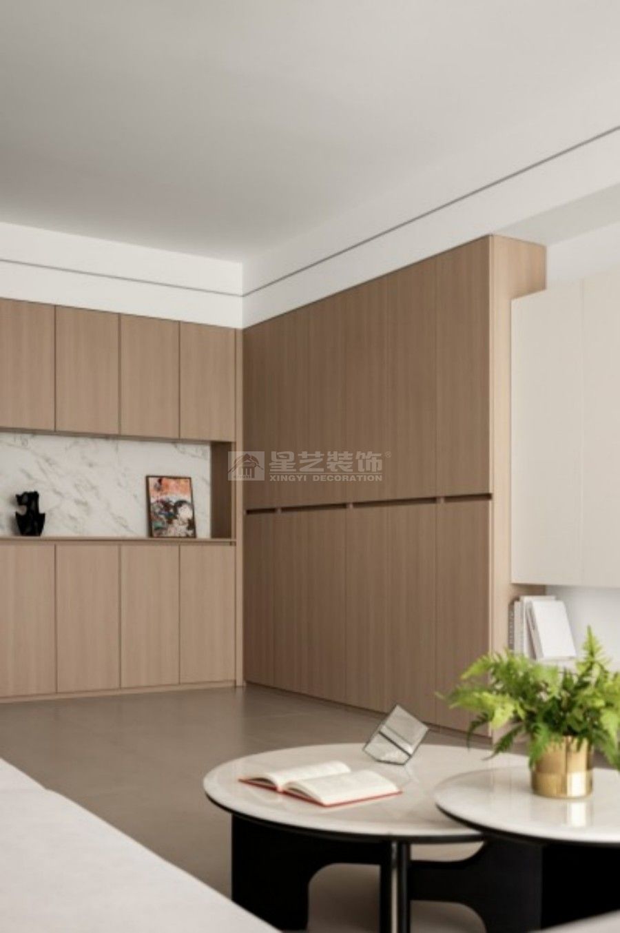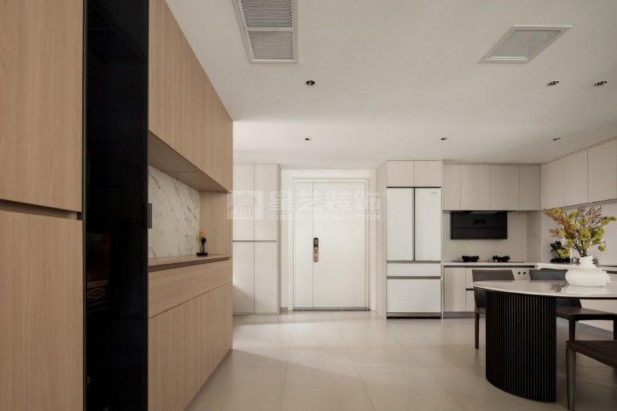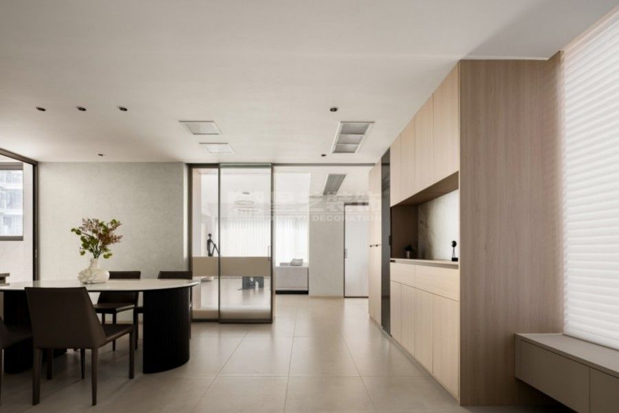 「当岁月沉淀为诗,家便成为安放心灵的禅意栖所」 这座为退休生活定制的极简主义居所,以四楼高度与花园达成诗意对话。整面落地窗化作天然画框,将四季流转的花园景致引入室内,晨起观露、暮色赏霞,框景成画的设计让养老生活始终与自然同频呼吸。 开放式餐厨空间以暖木色系为基底,隐藏式收纳系统保持视觉纯粹,L型操作台与餐厅形成环形动线,让烹饪时光成为与家人互动的温馨仪式。 独立茶室采用半透光柔纱玻璃推拉门隔断,原木茶桌,墙面内嵌书架收纳茶器。临窗特设观景坐向,让品茗时刻既有私密禅意,又与窗外绿意保持若即若离的联结。 设计以「减」与「融」为核心理念:减去冗余装饰,让空间成为养心容器;融合自然光影、功能关怀与生活美学,打造出可随岁月温柔生长的养老居所——在这里,每个细节都在轻声诉说:慢下来,好好生活。 【静界·栖园】不止是房屋,更是盛放银发岁月的时光容器。