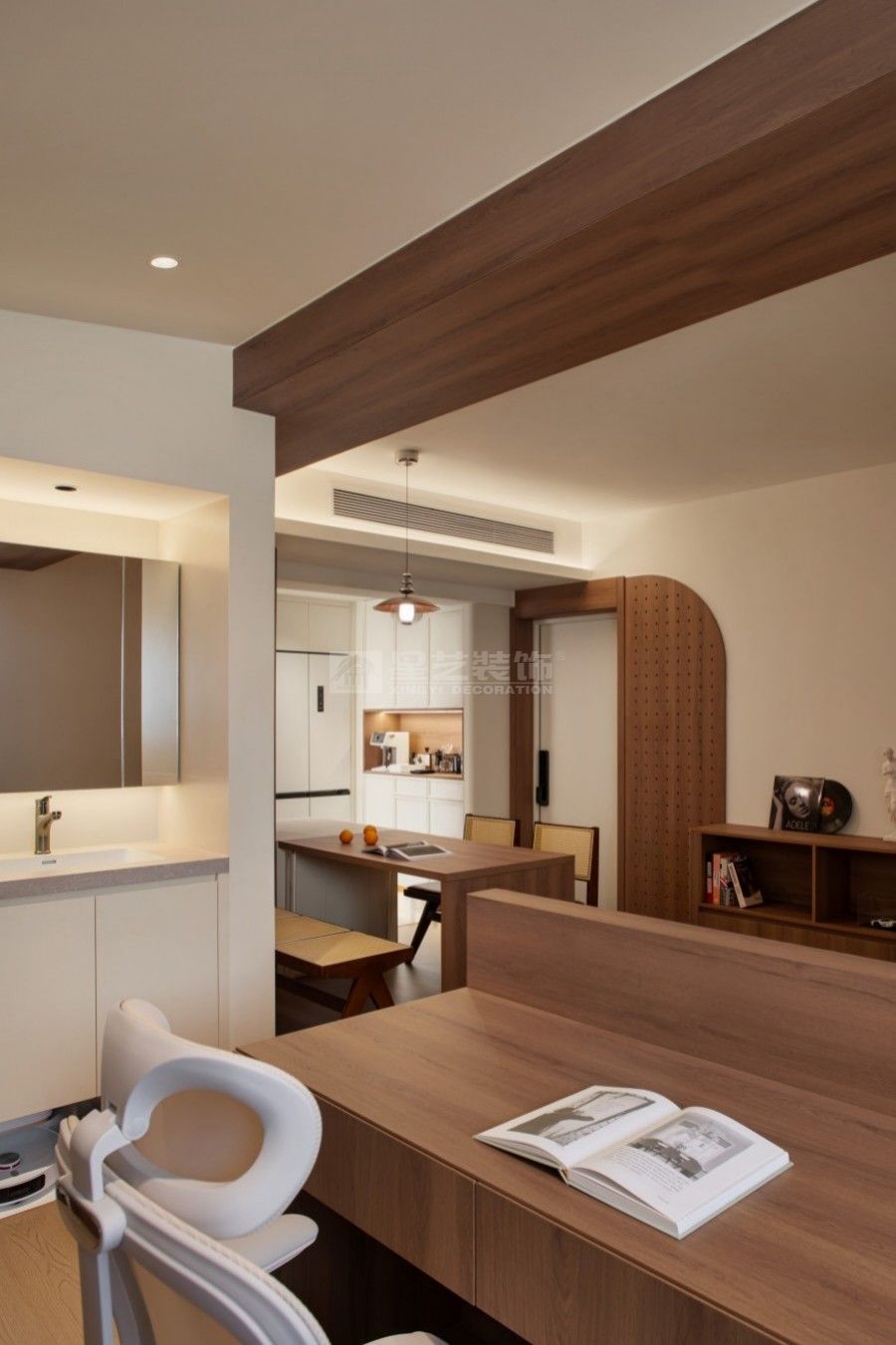 【时光漫游】温暖与趣味的中古之家 核心设计理念是打造一个“不被定义”的家。它既有中古风的沉稳质感,又有年轻夫妻的活泼生机;既能承载共同的欢聚时光,也能安放各自独立的爱好与灵魂。