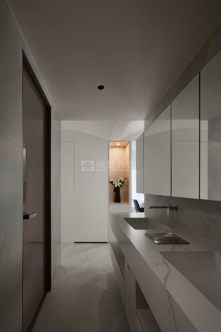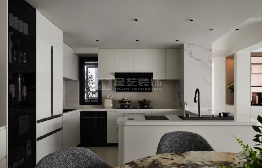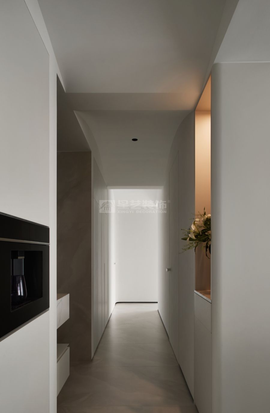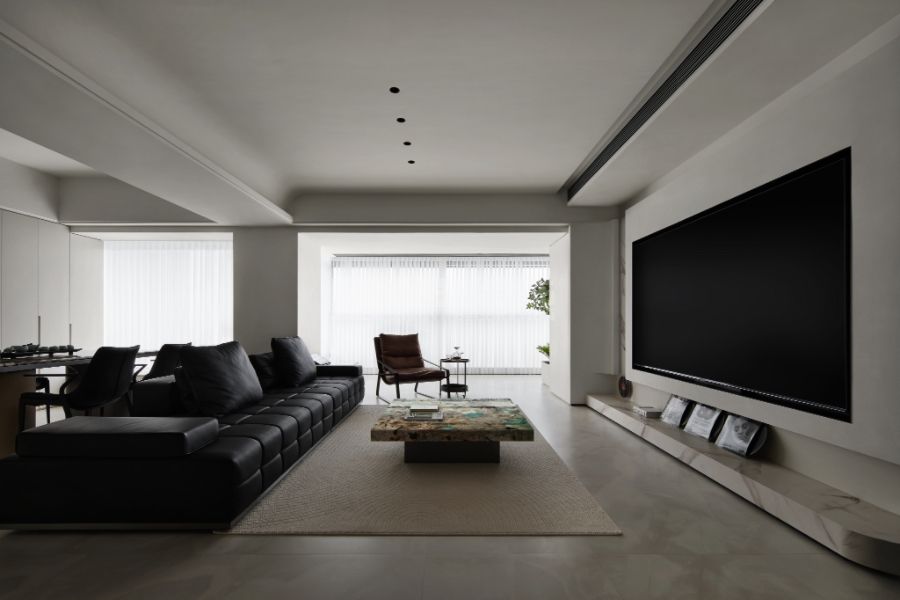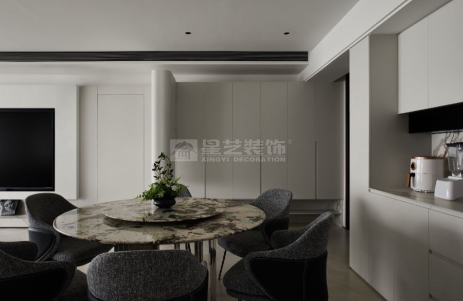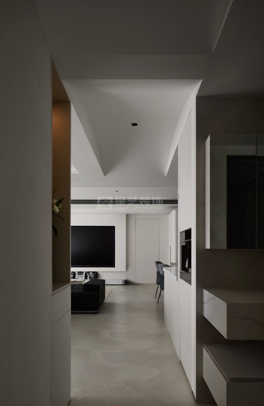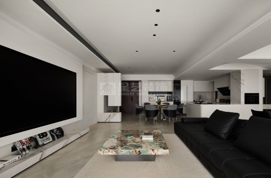 **开放通透:** 尽量减少不必要的隔断(非承重墙),创造流动的空间感,如客餐厅一体化、开放式厨房(需考虑油烟问题)。 **动线流畅:** 确保人在空间中的活动路径清晰、便捷、无阻碍。 **功能分区明确:** 即使开放,也要通过家具、灯光、地面材质等软性方式暗示不同功能区域。 **极简结构:** 避免复杂的吊顶造型(如多层吊顶、复杂灯槽),采用平顶。墙面、地面、顶面线条力求干净利落。