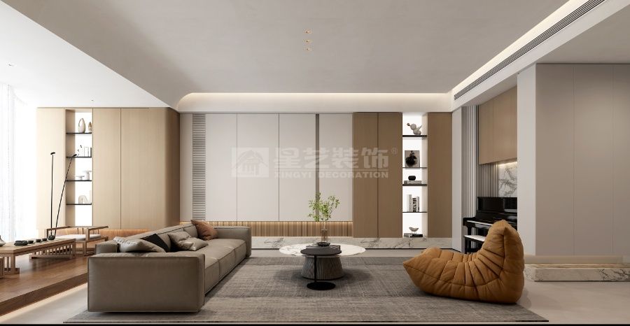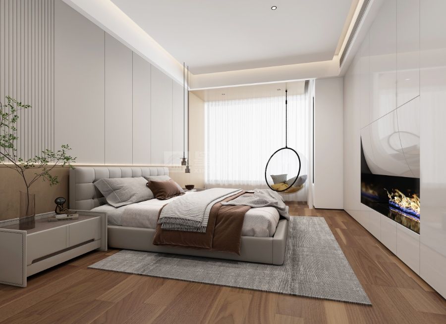 以黑白极简为骨,借曲线沙发柔化冷调,融隐藏收纳与壁炉暖光,用克制线条衬艺术软装,在理性框架中织入松弛质感,营造高阶现代居境