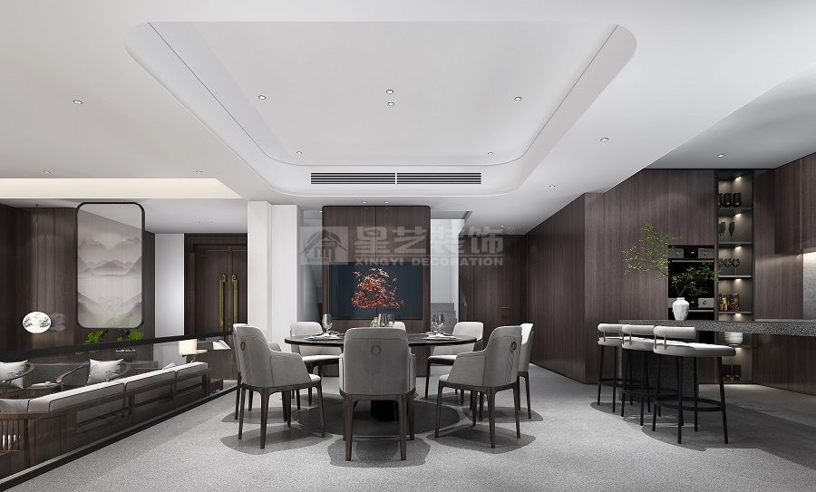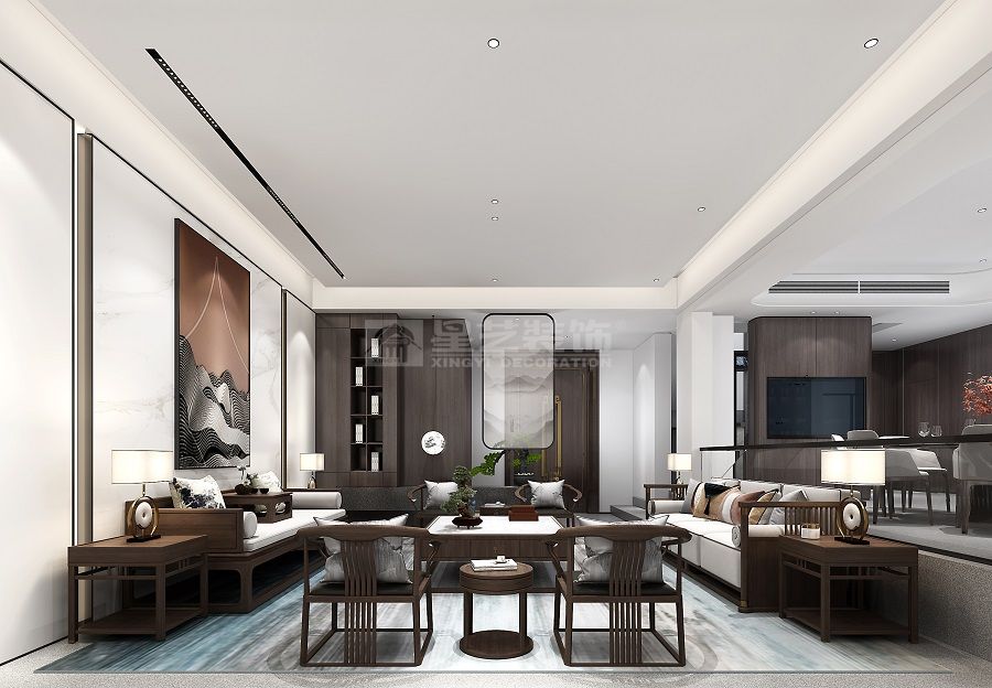 本空间以“东方意境,现代演绎”为核心设计理念,将传统中式美学与现代居住功能深度融合,打造出兼具文化底蕴与当代舒适感的生活场景。
