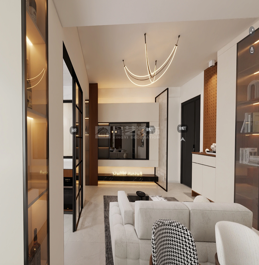 以现代风格为基础 再加上古典风的颜色款式 用色调穿插着混搭 加上后期家私的搭配 让家更显温馨 。。