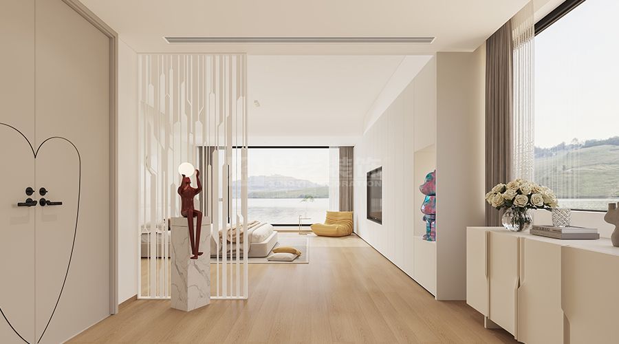 面朝花园,春暖花开! 以“少即是多”为核心理念,摈弃冗余装饰,追求功能与美学的平衡。大台阶式电视台以几何体块叠加,形成视觉纵深感,同时强化空间互动性;键盘式的楼梯台阶,跳跃式的极窄地灯,演奏一曲宁静而浪漫的篇章!