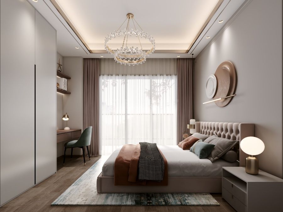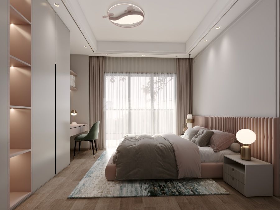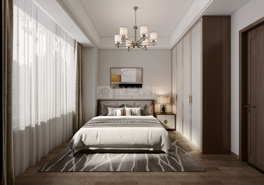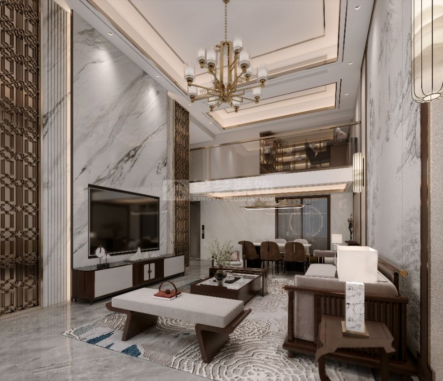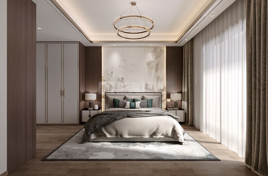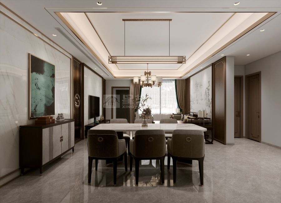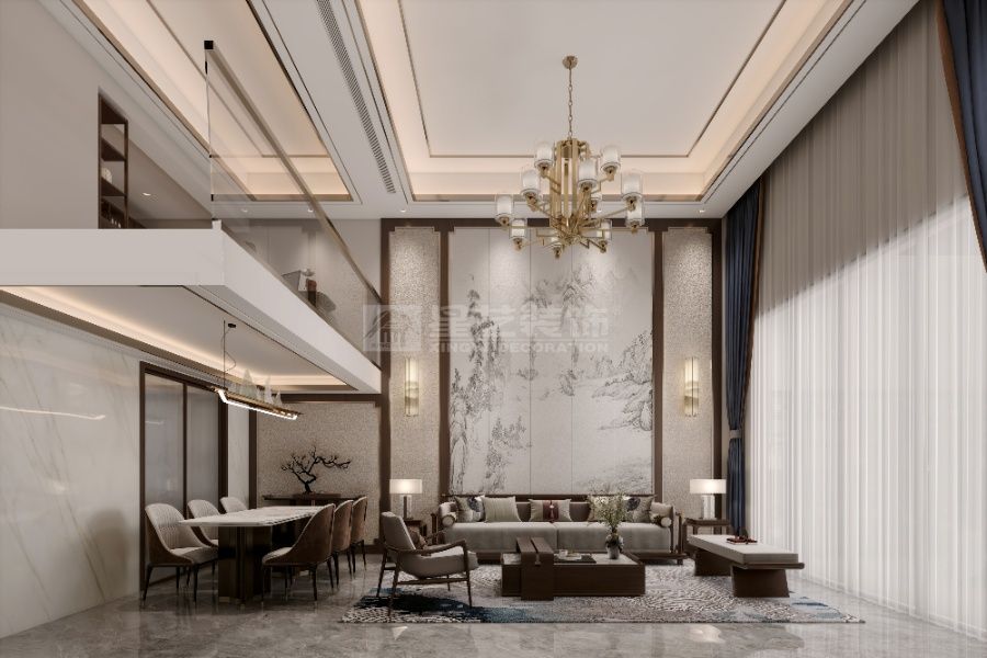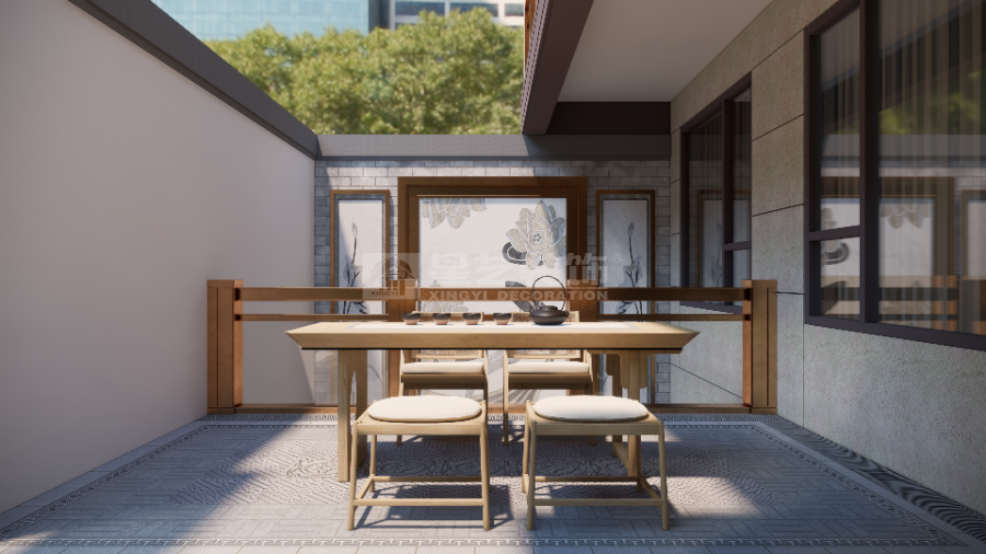 新中式茶空间,以竹景圆窗、木栅顶显东方韵,借透光帘引外景,融储物书架与自然质感,造静雅品茗之境