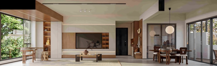 国企退休,喜欢安静舒适的养老环境,空间风格古今结合,清雅耐看