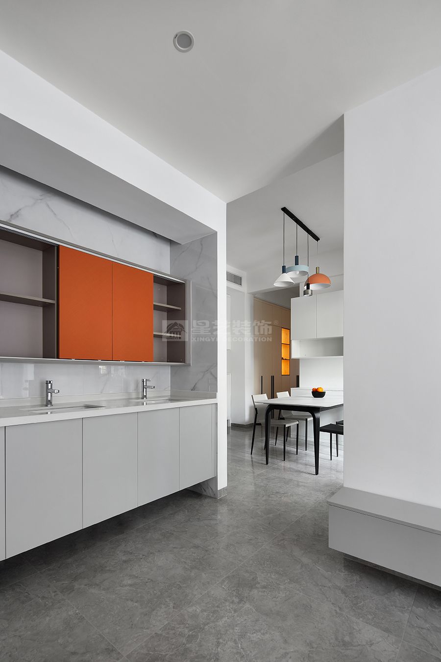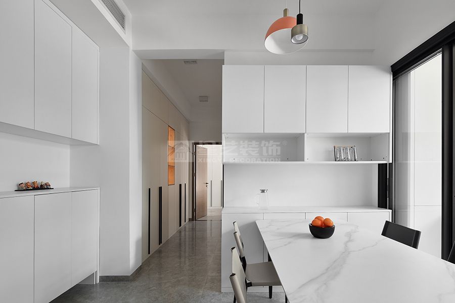 越秀区的老房子,需要把原先黄泥批荡重新打掉。因为家里人口较多,所以整体房型需要重新设计。将原先四房格局改为五房,而且增加客餐厅的采光,让客餐厅独立开来,还增加了整体的储物量,改善原先业主的居住需求。