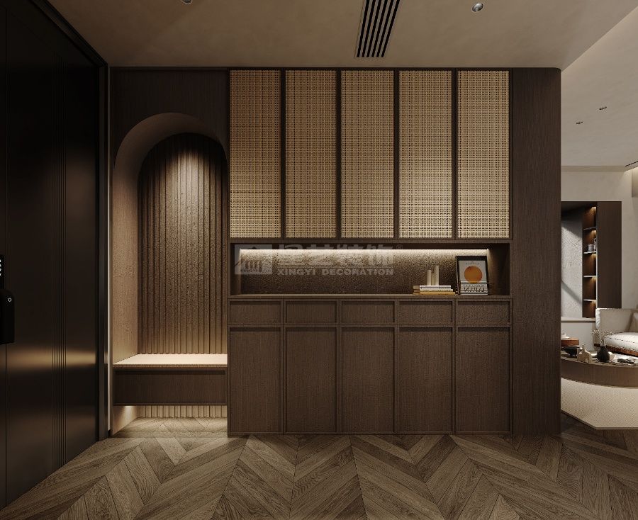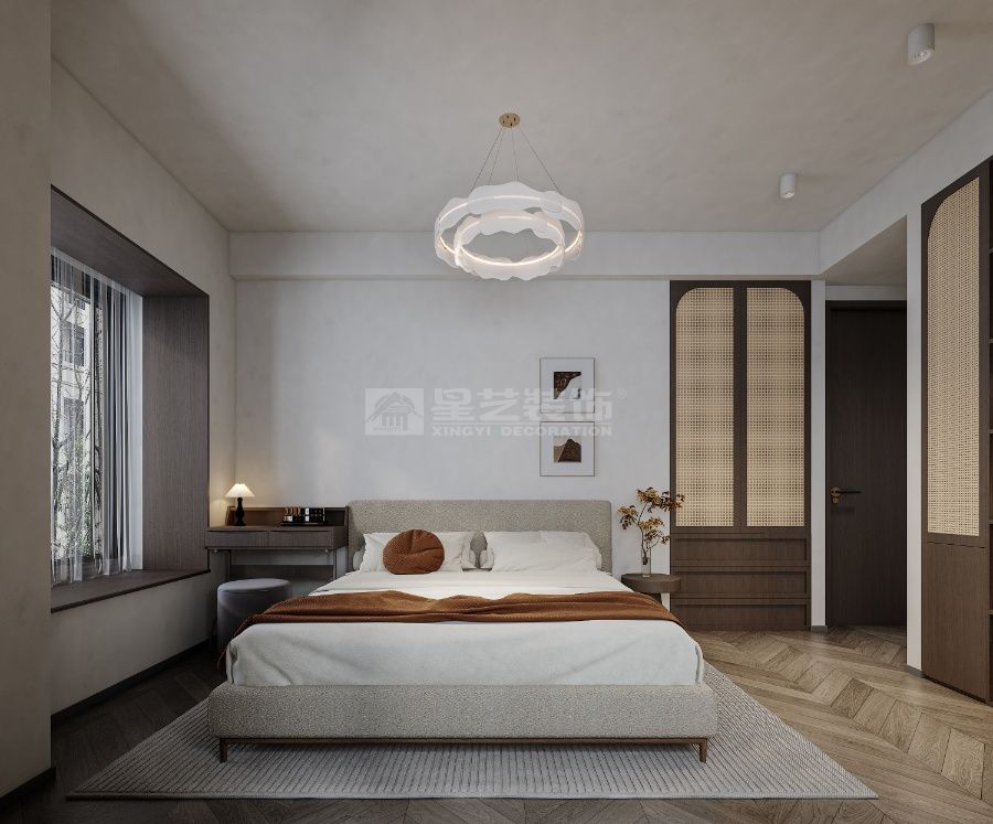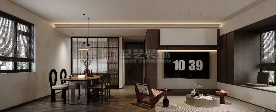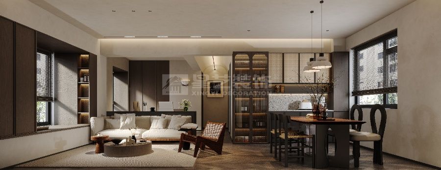 侘寂风多功能室,以地台 + 柜储拓复合功能,融书桌、坐榻衬松弛,借柔光与窗景显静意,造办公休憩双效场