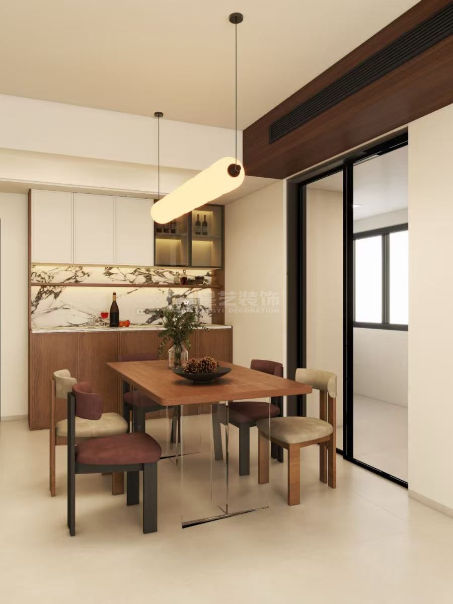 设计风格为中古风效果图,旧房二次翻新设计亮点融入了胡桃木木纹元素穿插在空间中,让整体空间舒适度提升