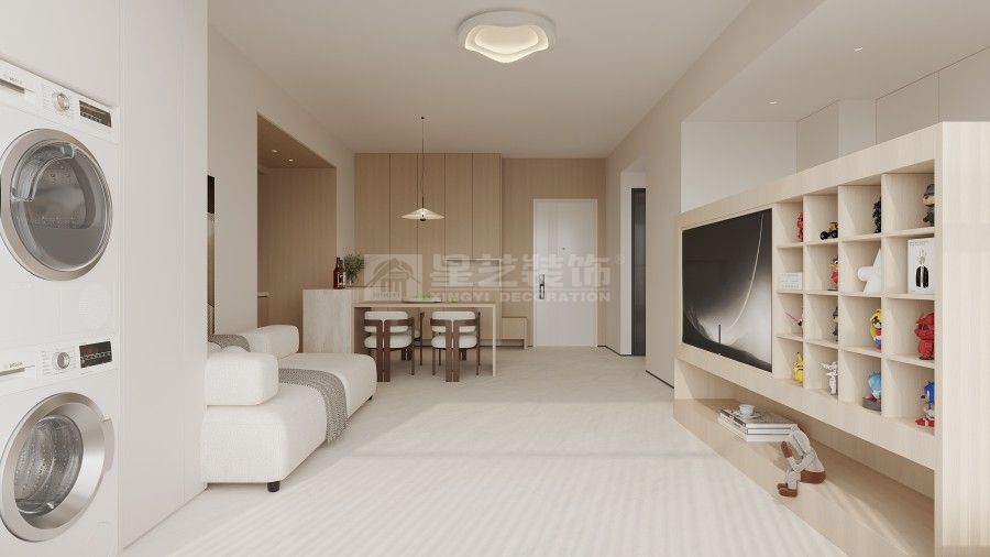 整体风格以原木风为基调,将收藏展示、日常收纳与家庭互动巧妙结合。设计目标是让手办成为空间中的亮点,而不是杂乱的堆积;同时兼顾生活的舒适度与展示的美观度。