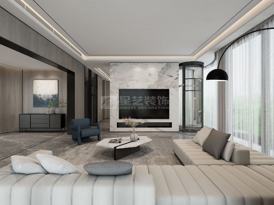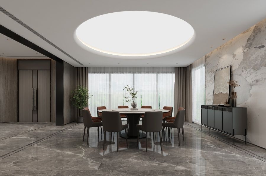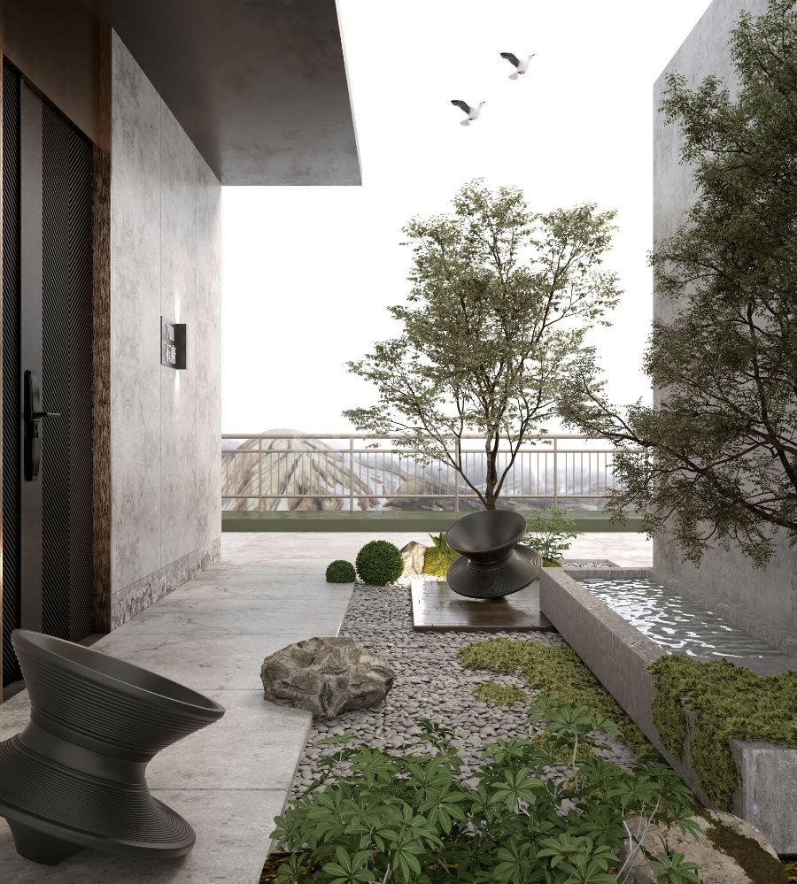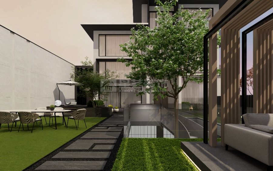 以「现代极简 + 自然共生」为核,用灰白立面、通透玻璃消弭建筑边界,庭院植景与户外空间交融,营造静谧松弛的都市栖居场域