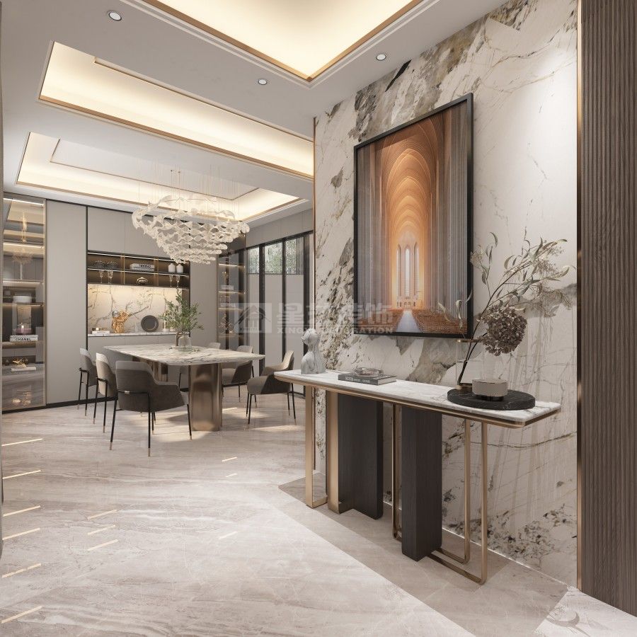 融合开阔布局与艺术细节,运用高级石材、金属与皮革材质。通过精致线条与自然光影,营造出既彰显品位、又回归舒适与私享的现代轻奢生活场域。