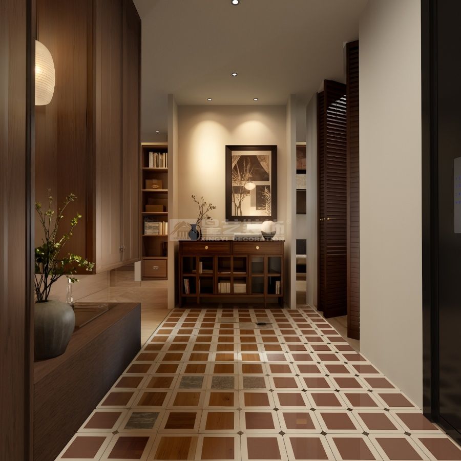 以 “新中式雅序 + 归家仪式” 为核,木构衬暖光,砖纹铺叙肌理,陈设藏收纳,以简敛细节营造兼具秩序与温度的入户过渡空间。