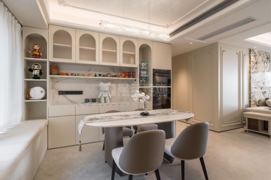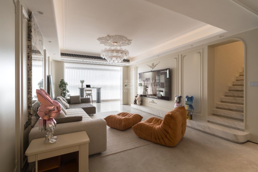 以优雅随性为核心,糅合复古质感与自然诗意,摒弃刻板奢华,追求慵懒松弛的生活氛围。空间上偏爱柔和的弧形线条、雕花石膏线、复古拼花地板,搭配奶油白、浅杏色、淡粉等低饱和色调,营造温润柔和的基底。软装选用丝绒沙发、蕾丝窗帘、复古水晶吊灯,点缀油画、干花、铁艺摆件,增添艺术气息。同时融入大量自然元素,如绿植、藤编家具,让阳光透过百叶窗洒入,勾勒出兼具复古韵味与浪漫情调的生活场景,诠释法式生活的精致与慵懒。