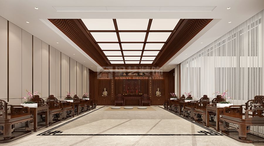 宗祠用花梨木名贵木材,保留自然纹理,显得格外的厚重和庄严。 花鸟,山水,人物,瑞兽的图案,不仅是装饰,更承载着家族历史,价值观和祖先崇拜。宗祠大堂采用中轴线对称布局,原木的家具依次排放。体现家族的兴旺和传承。