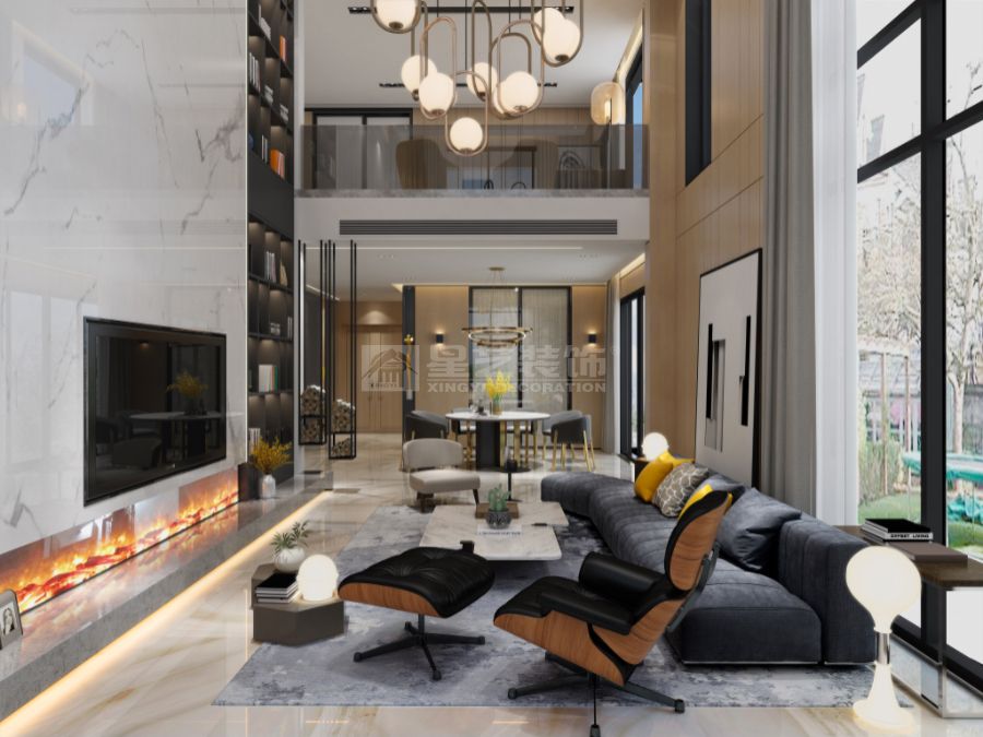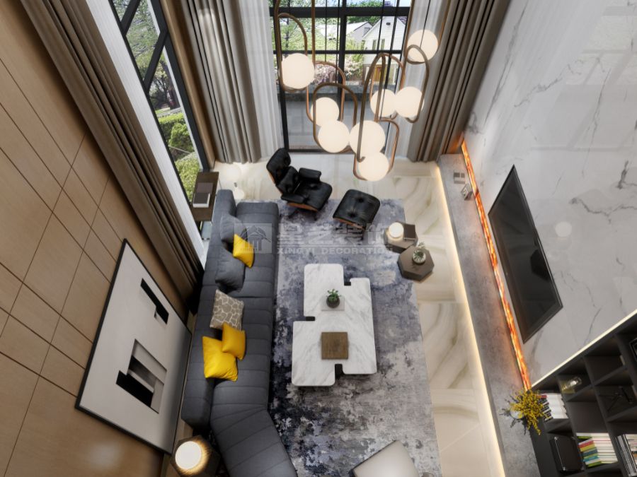 别墅共四层,空间规划遵循动静分区、功能分层原则,打造多元生活场景。负一楼为社交休闲主场,规划麻将室、影音室、品酒区与瑜伽区,搭配下沉式花园设计,室内空间与室外绿意无缝衔接,从上层俯瞰视野绝佳。二楼打造6.8米挑高中空空间,开阔通透的格局尽显大气质感;二楼、三楼以睡眠功能为核心,构筑静谧舒适的休憩天地。