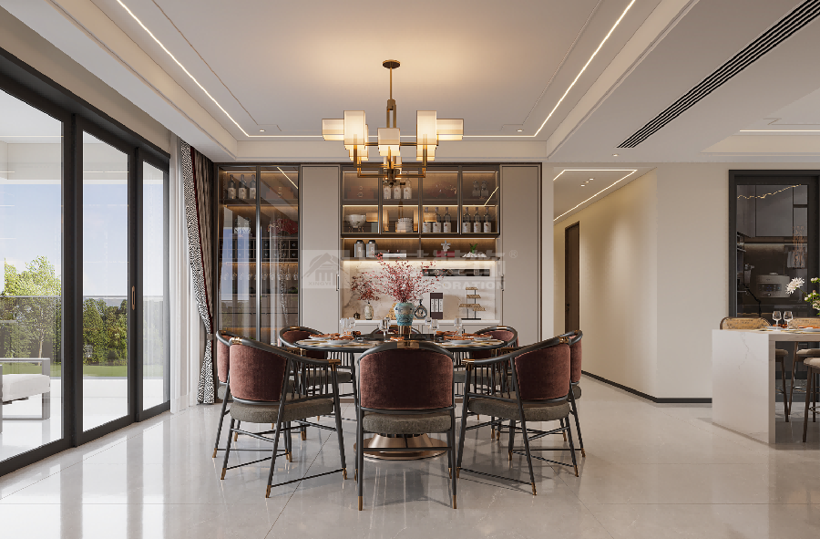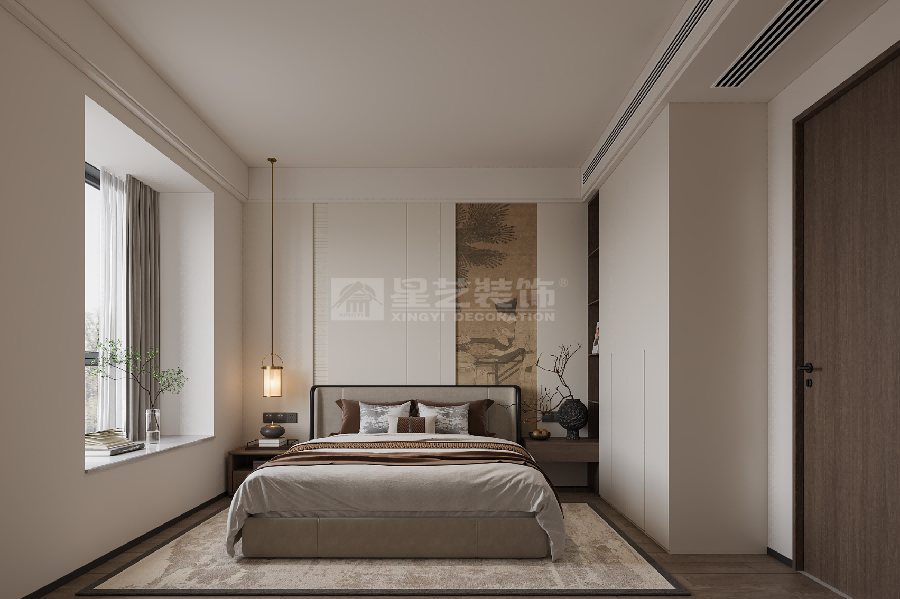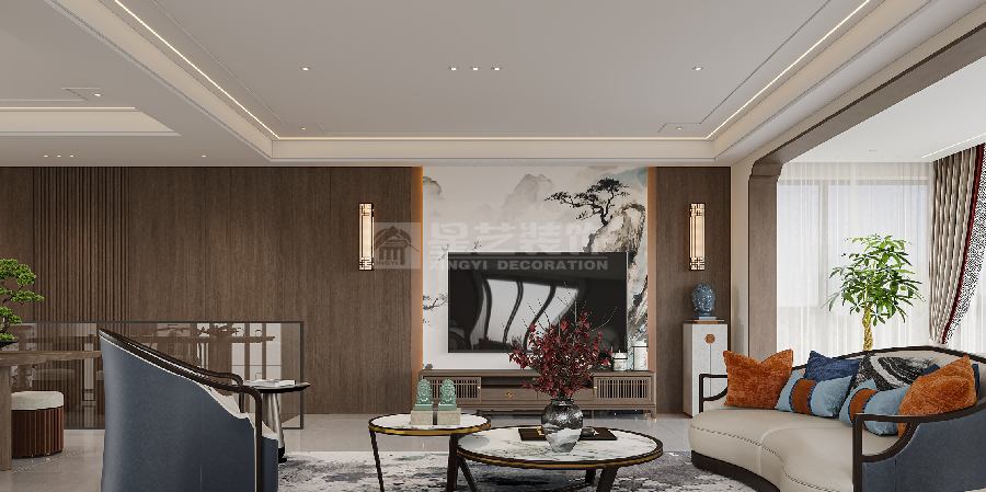 本方案以新中式为精神内核,通过现代设计手法实现“古意今用”。空间既满足当代生活的舒适需求,又通过材质、光影与陈设的精心搭配,让使用者能在喧嚣都市中体验“洗尽铅华,复返自然”的中式雅致生活。