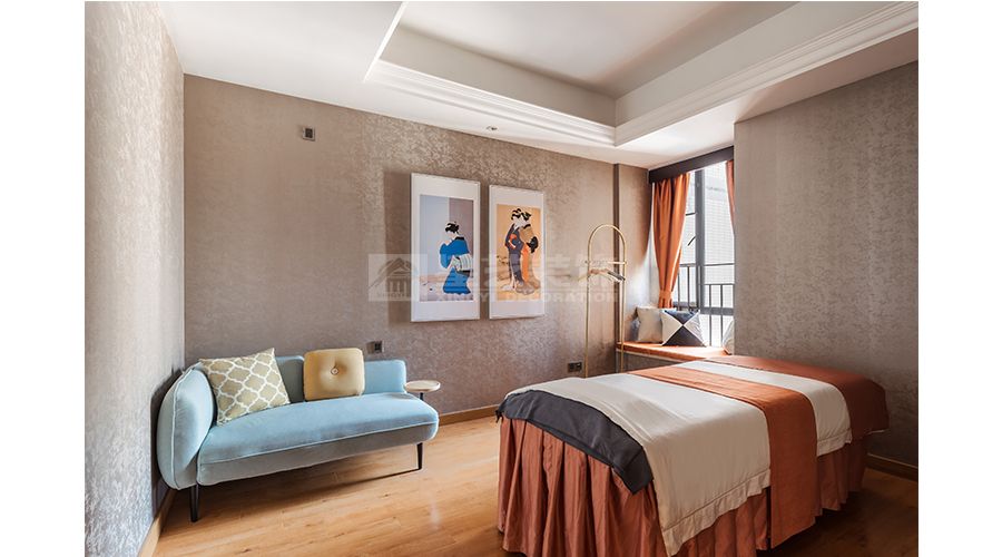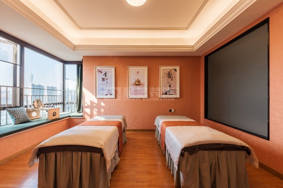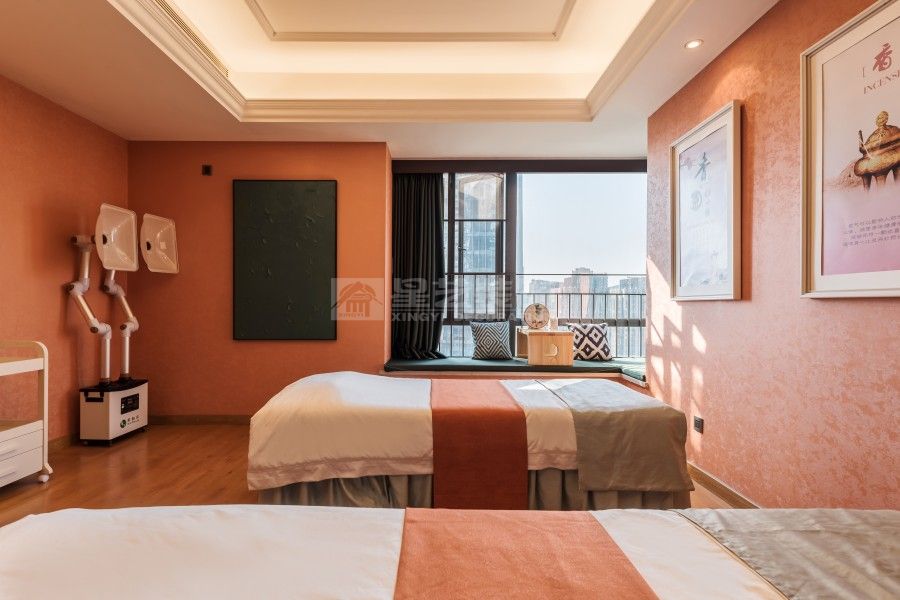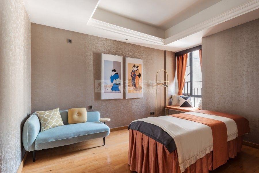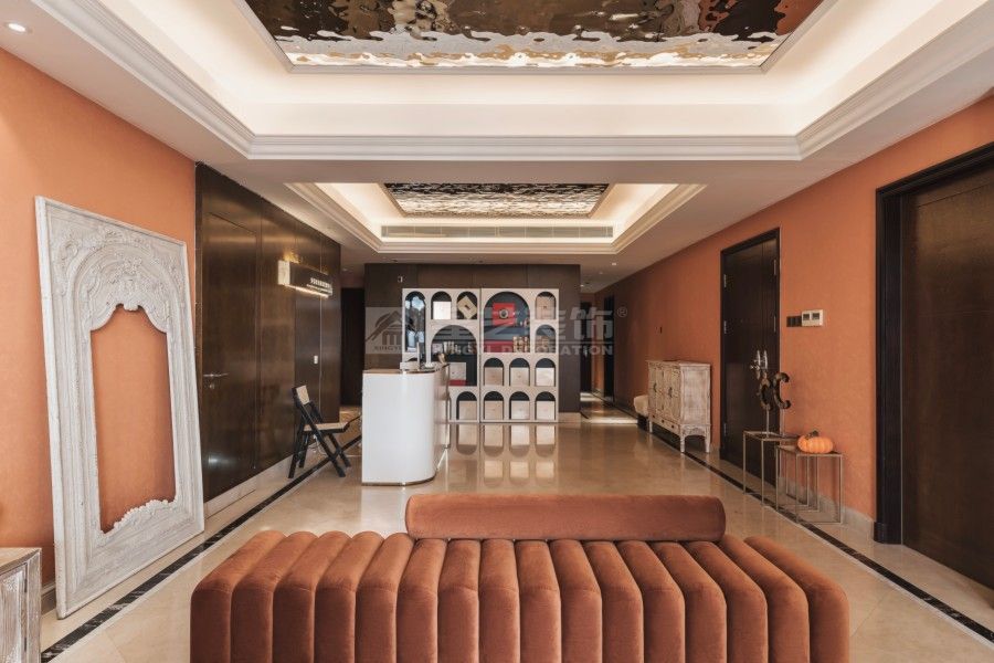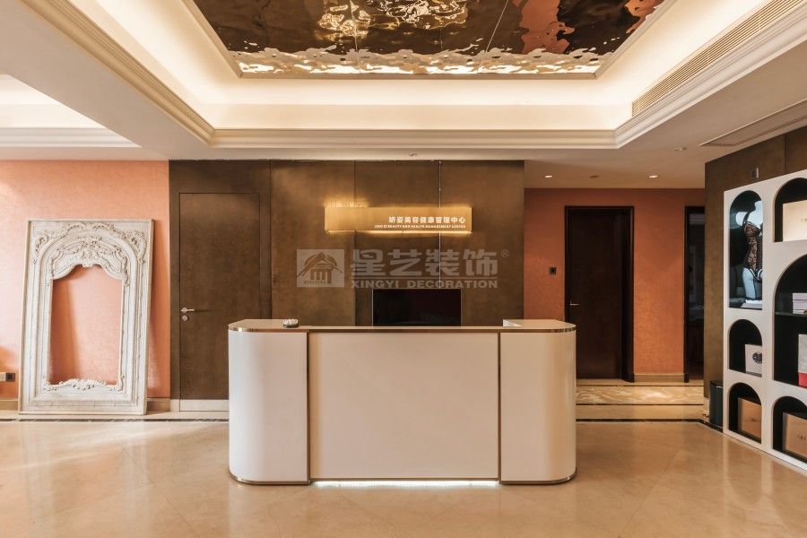 美容院以轻奢艺术为设计内核,将暖橘色墙面与金属质感顶面相融,营造温柔又精致的氛围。几何造型的展示柜打破空间沉闷,流线型接待台兼具功能性与美学感,复古雕花镜框与现代软装碰撞,让艺术肌理渗透每个角落,打造出兼具体验感与视觉张力的美护空间。