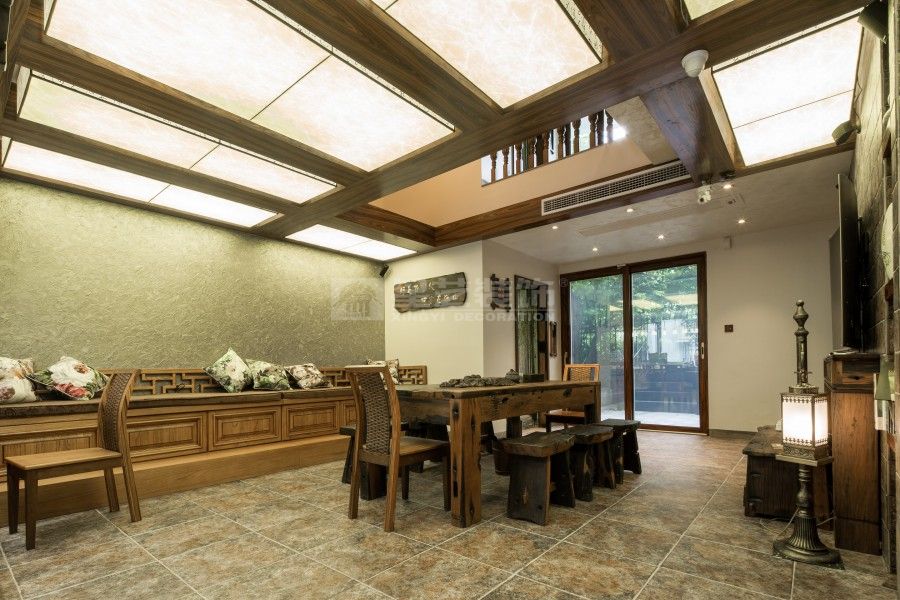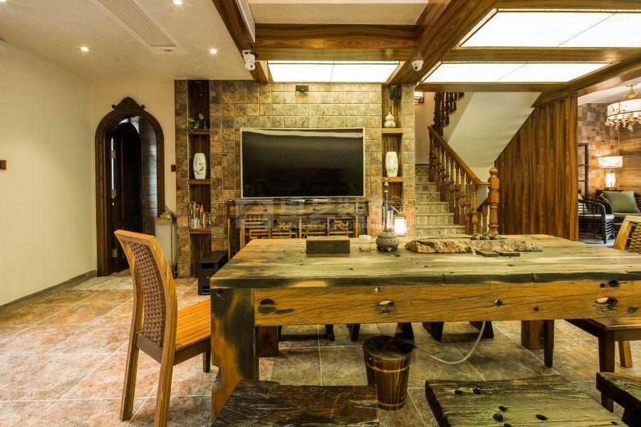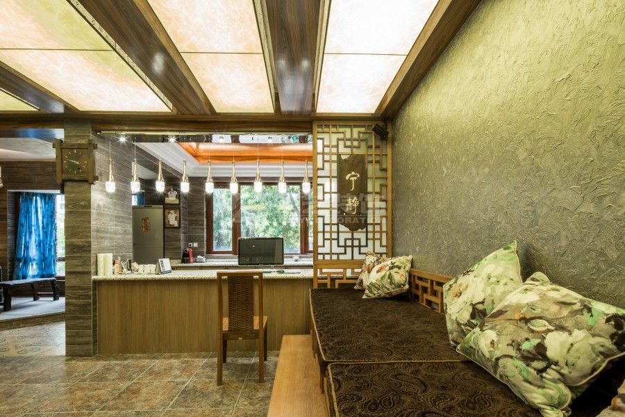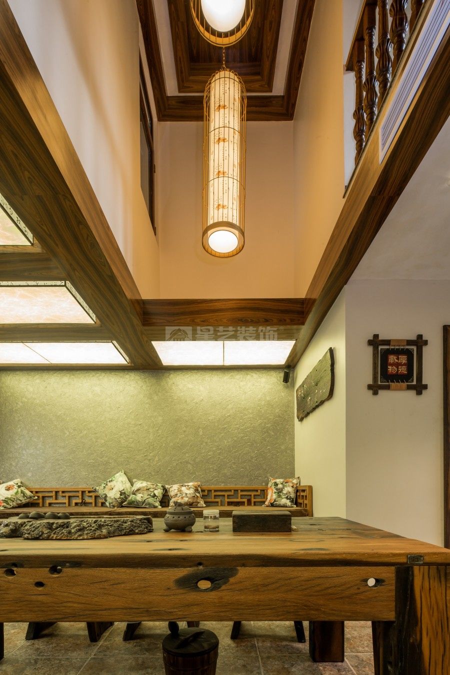 空间以木为魂。取原生古木为梁柱,展现榫卯结构的朴拙之力;辅以竹编、陶器点缀,于粗砺中见细腻。整体色调取原木褐、米白与靛青,似水墨浸润。檐下留隙,引天光树