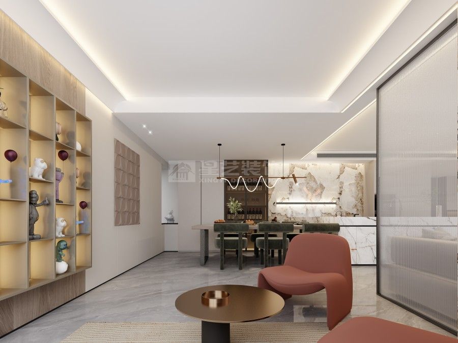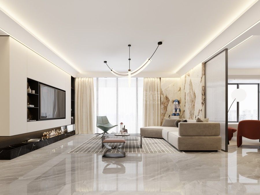 为平层构筑开阔通透的空间感,以岩板、木饰面与隐形收纳为主,精炼线条,引入自然光影,于纯粹的黑白灰基调中营造沉静而富有呼吸感的现代居所。