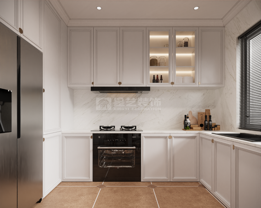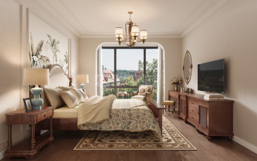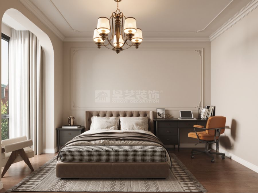 细节处理上,简化传统美式的雕花线条,以利落的几何造型、简洁的硬装线条凸显现代感;同时保留美式风格的经典元素,如复古百叶窗、复古风踢脚线、美式乡村风壁炉造型,赋予空间温度与记忆点。
