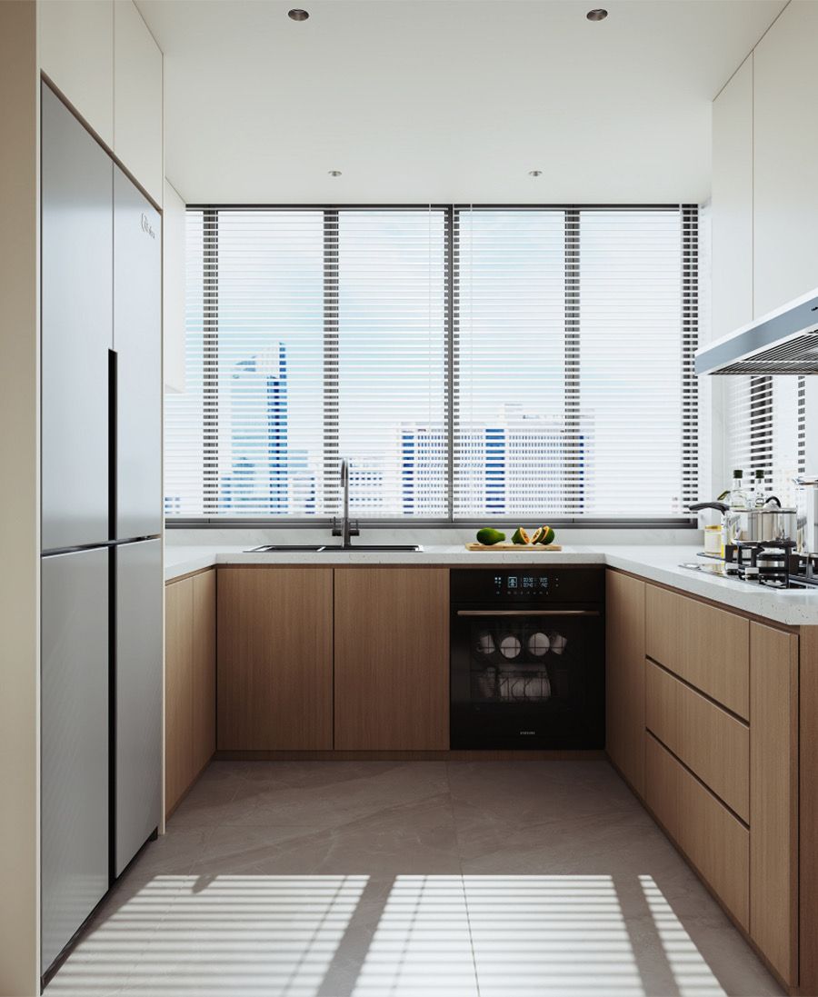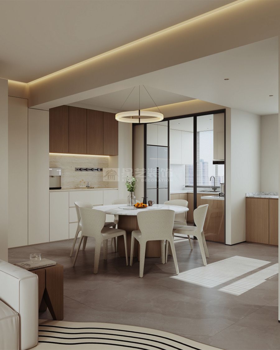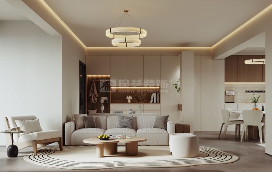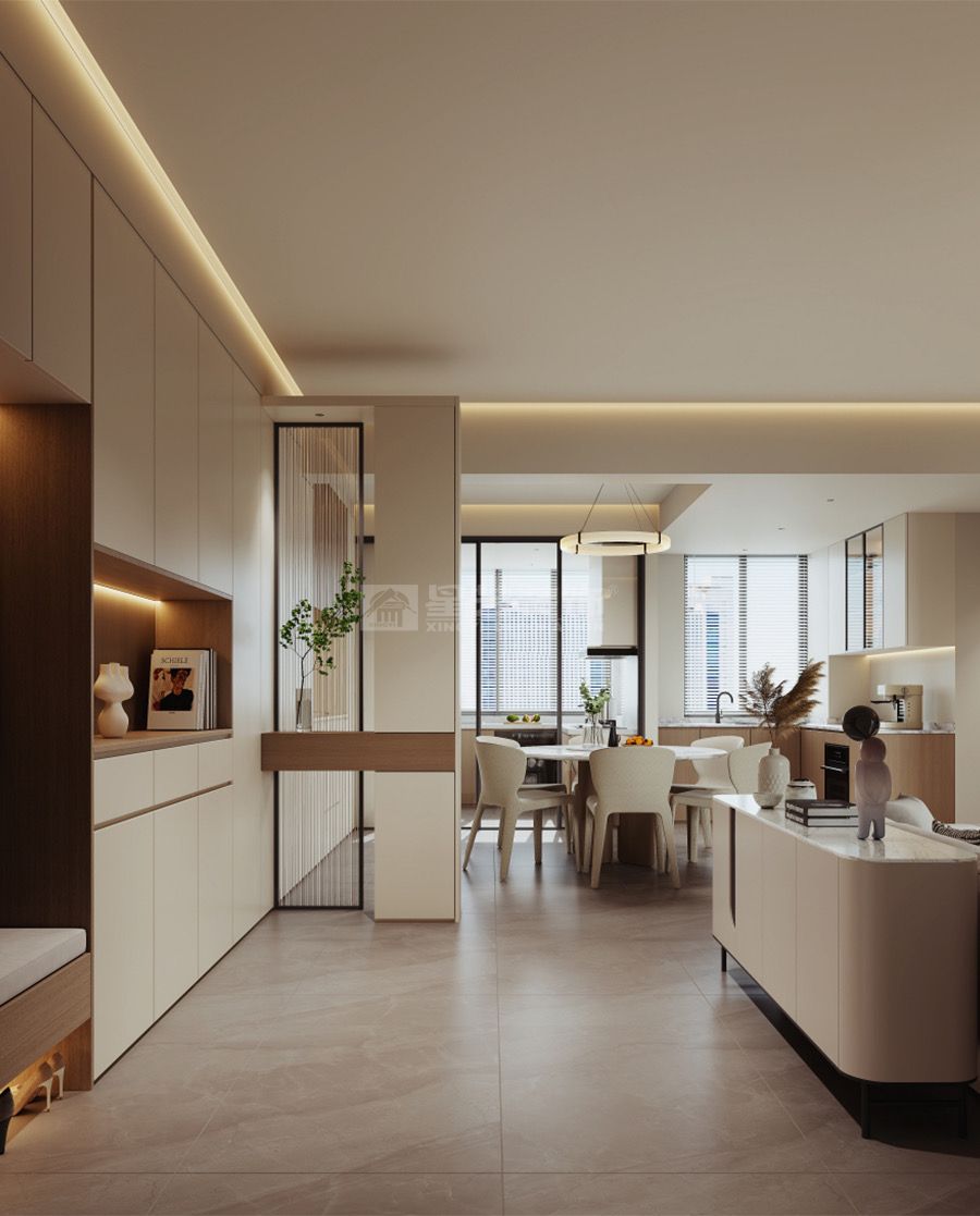 现代极简风和自然原木风完美融合,奶油白+原木色,干净清爽又不失温馨舒适,入户超多储物柜设计,满足分区储物需求,让家“空无一物”