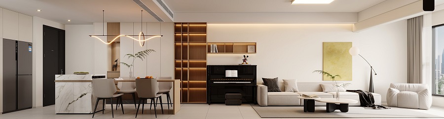 原木风的核心,是“自然为形,舒适为魂”。它讲究材质的纯粹性,常搭配棉麻、藤编、石材等天然材质,与木材的温润形成呼应,营造出层次丰富却不杂乱的视觉效果;同时注重光影的互动,借由大面积的采光引入自然光,让阳光拂过木质表面,勾勒出柔和的明暗变化,赋予空间灵动的生命力。这种设计,不止于视觉上的清新治愈,更在功能上贴合日常起居的需求,将自然的宁静与生活的烟火气相融,打造出能安放身心的温暖栖居地。