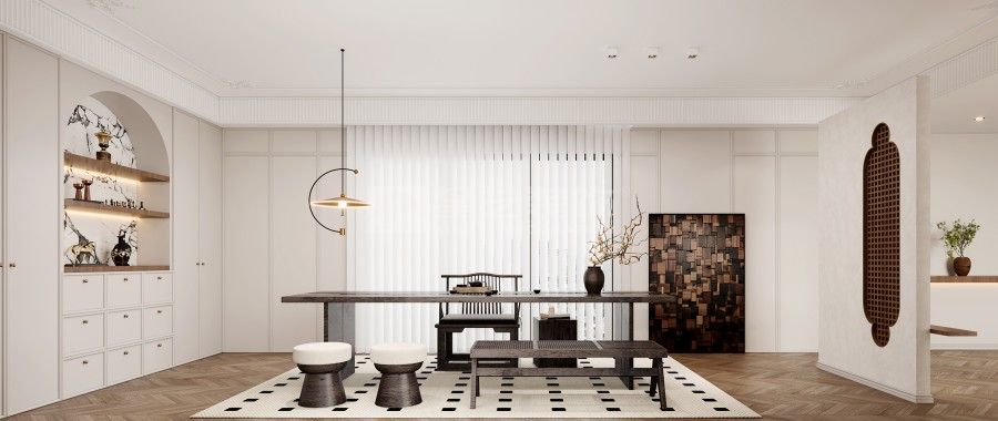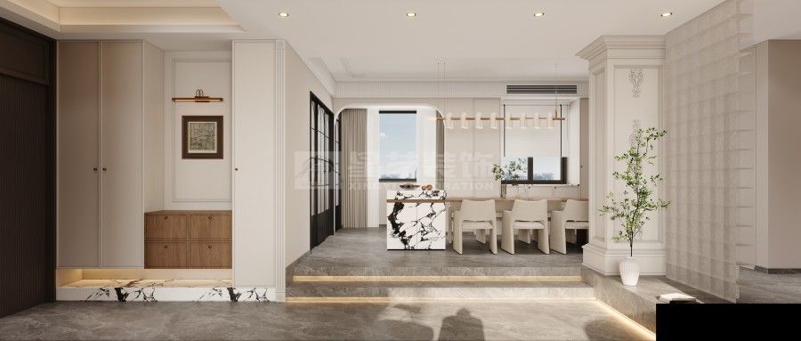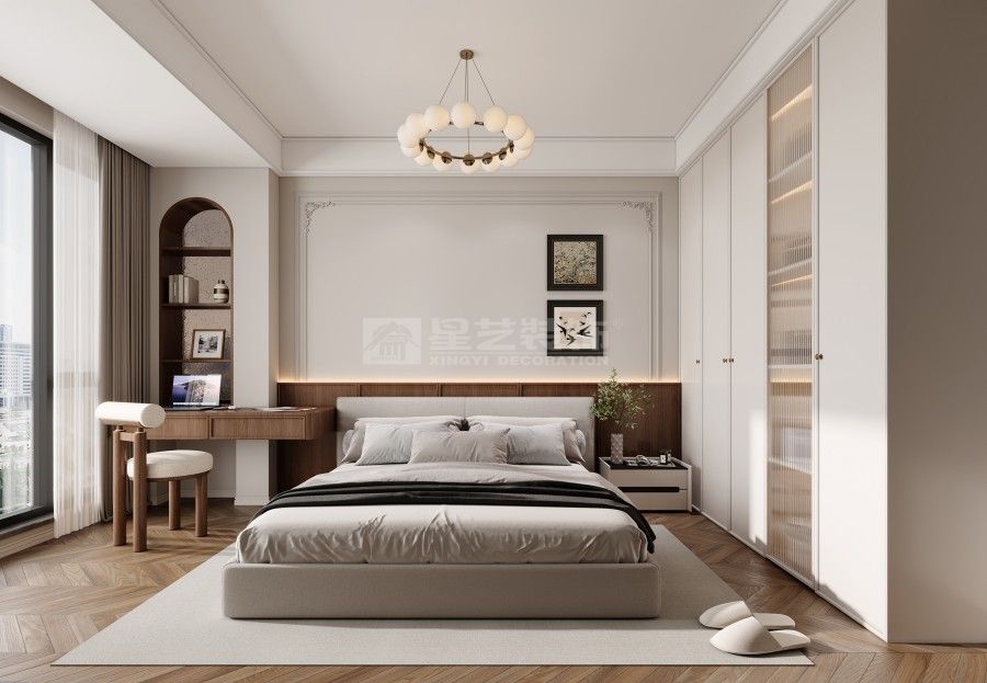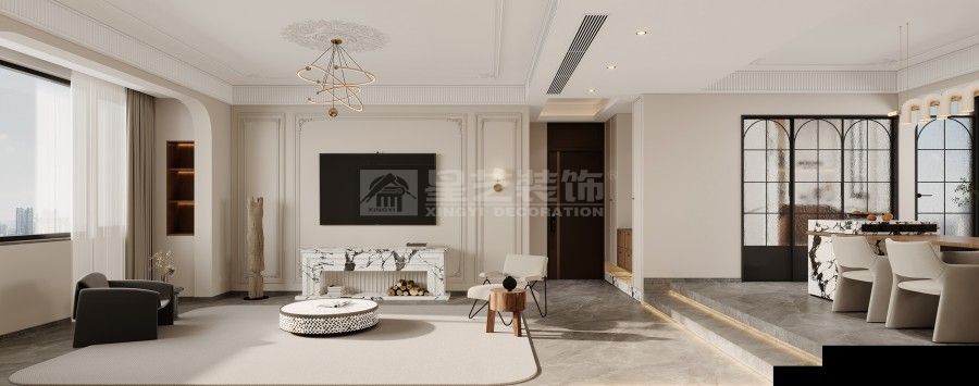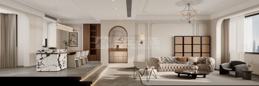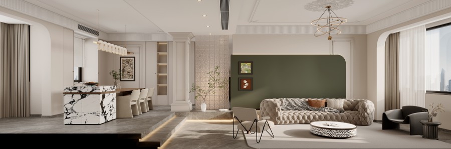 打破刻板的古典桎梏,重构法式美学的当代表达。摒弃繁复堆砌的装饰主义,以轻盈的线条、通透的格局为基调,将原木的温润、大理石的冷冽与丝绒的柔滑巧妙糅合。保留法式风格的优雅基因,却不囿于传统形制,让空间既有复古的韵味,又不失现代生活的舒适与自在,演绎出独属于当下的法式轻奢。