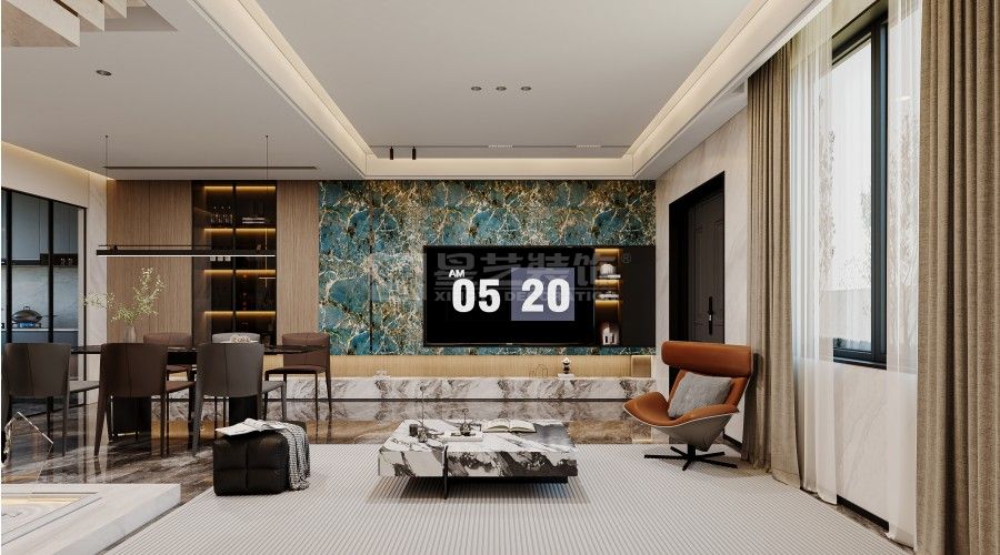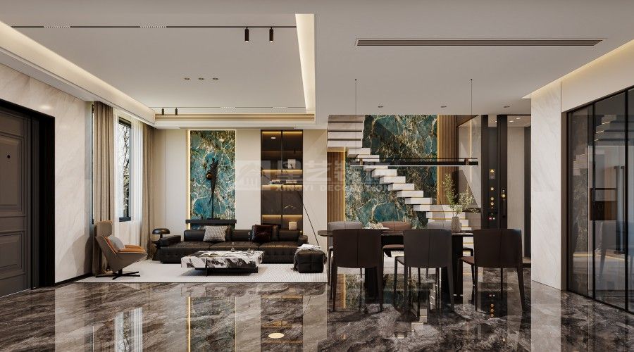 靠近万达的璞悦风华联排别墅,两层改三层,现代简奢风格真的显大高级,奢石头点缀再加金属元素,高级!