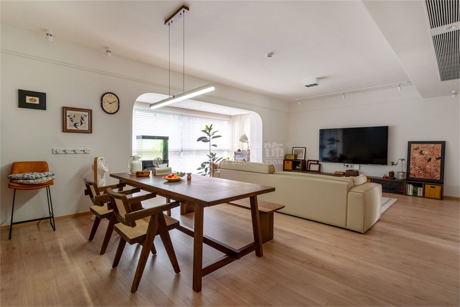 180平原木风装修摒弃繁琐装饰,以木材本身的纹理、色彩和质感作为空间主角,营造温暖、松弛、充满呼吸感的居所