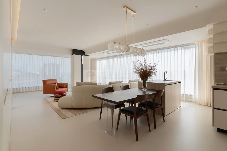 本案203平米极简空间,以“少即是多”为核心理念,通过留白手法消减冗余,回归居住本质。大面积中性色调搭配自然光影,营造通透呼吸感。材质上强调原始肌理与序列感,利用线条分割与体块穿插构建空间层次。功能与美学在此平衡,旨在为居者打造一个静谧纯粹、可自由呼吸的精神庇护所。