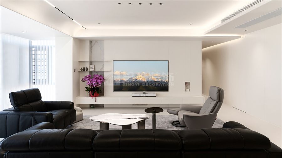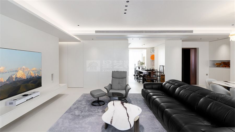 本案以 220㎡大平层为载体,将现代简约风格与空间尺度完美融合,摒弃冗余装饰,聚焦通透感、实用性与高级感。