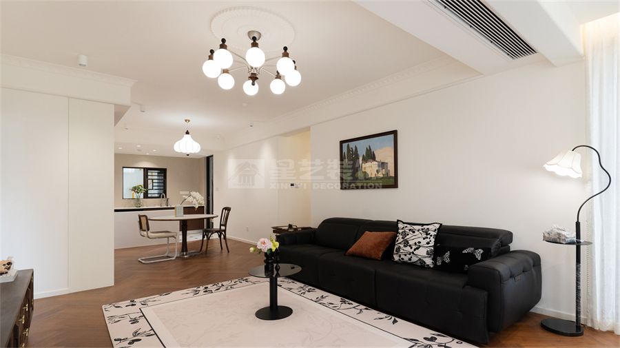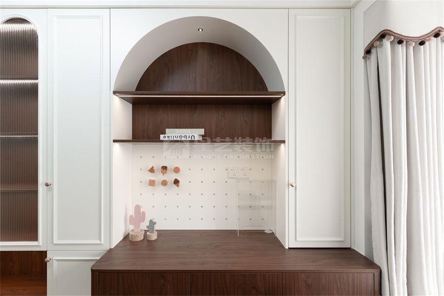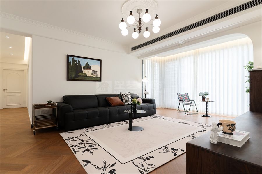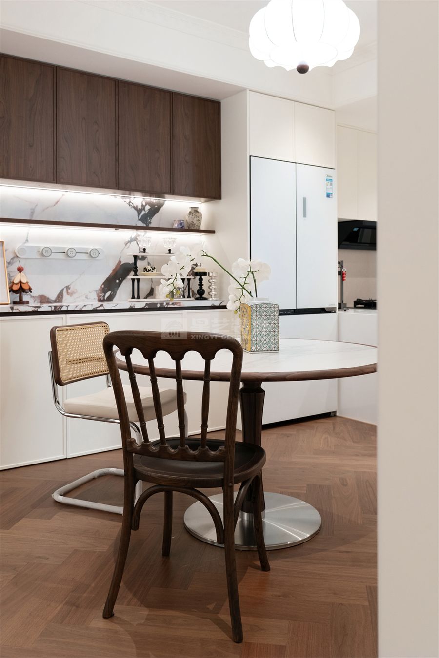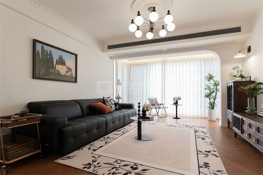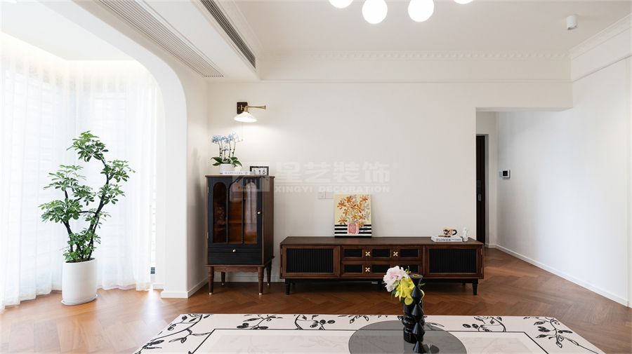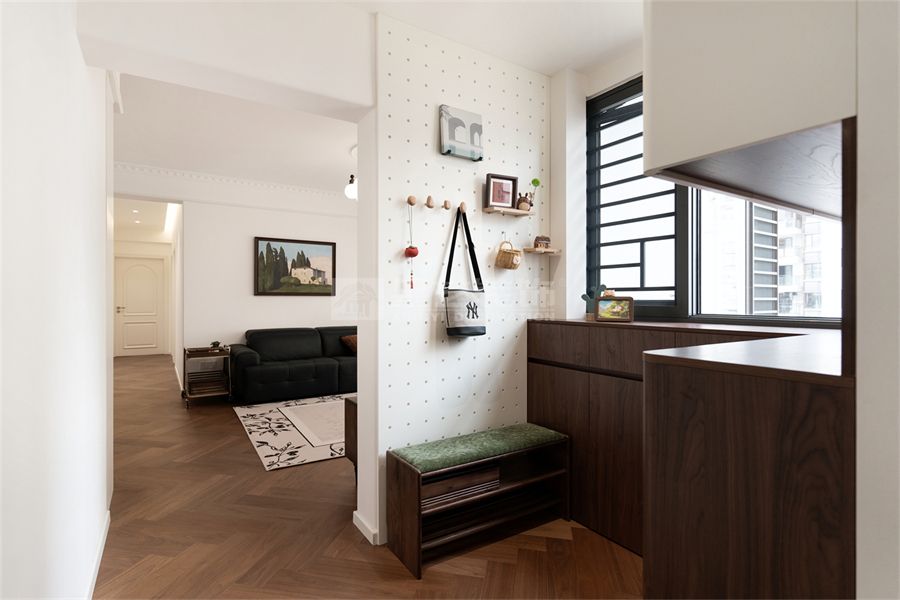 本案以中古风为核心,在 140㎡四居室空间里,平衡复古质感与现代居住需求。整体采用温润木色搭配低饱和大地色系,用胡桃木等材质,还原年代感与质朴肌理,摒弃繁复造型,强调线条利落与空间通透。