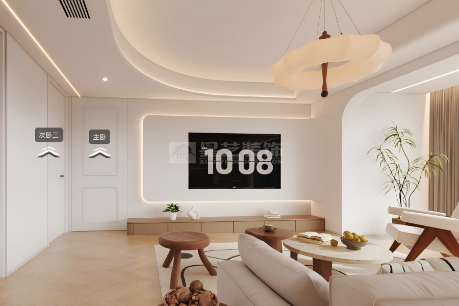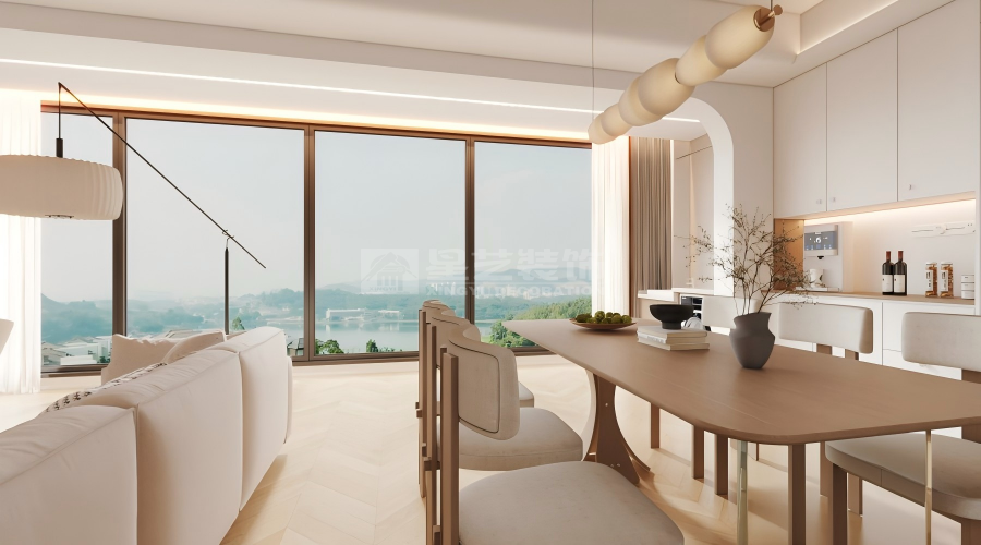 以原木风为核心,用奶白与浅木色构建治愈基底,通过通透的客餐厨联动布局,最大化引入自然光线与窗外景观。在柔和灯光与温润材质的包裹下,弱化空间边界与视觉压迫感,让居住者在松弛的氛围中感受自然与生活的联结,打造舒适宜居的理想居所。