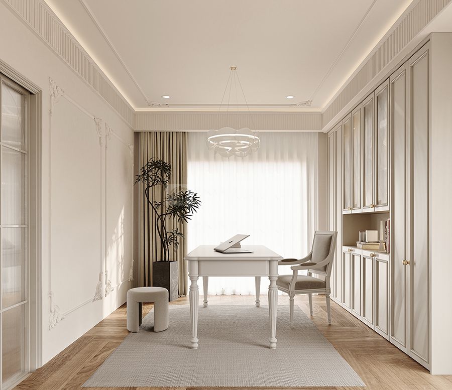 业主说:“终于拥有了属于自己的婚房。奶油色裹着温柔的法式线条,没有繁杂堆砌,只有柔光与浅木的温柔碰撞,一进门就被治愈了。” 餐厅的圆桌藏着未来三餐的烟火气,阳光顺着楼梯漫进来,花瓶里的白花轻晃,连空气都甜了;衣帽间的规整柜体收纳着生活的秩序,卧室的软床承接每日的疲惫,客厅的沙发则是我们午后发呆的最佳角落。 每一处设计都藏着“好好生活”的执念,让家成为卸下疲惫的温柔港湾。往后余生,就和爱的人在这浪漫里,慢慢相遇,慢慢变老