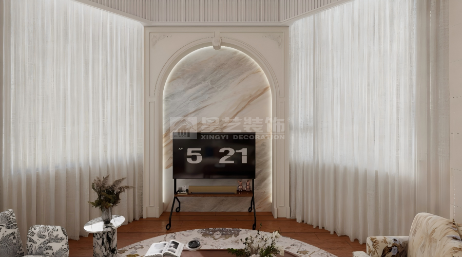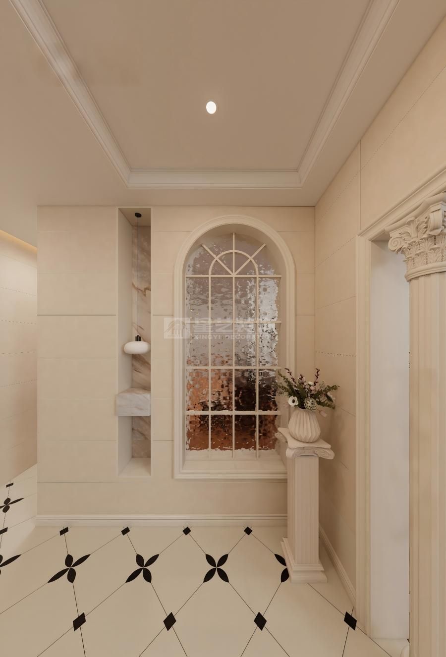 本案为法式风格,整体浅色为基调,深色木纹作为设计跳色,突显整体高级感,玄关的大气让一进家门有仪式感