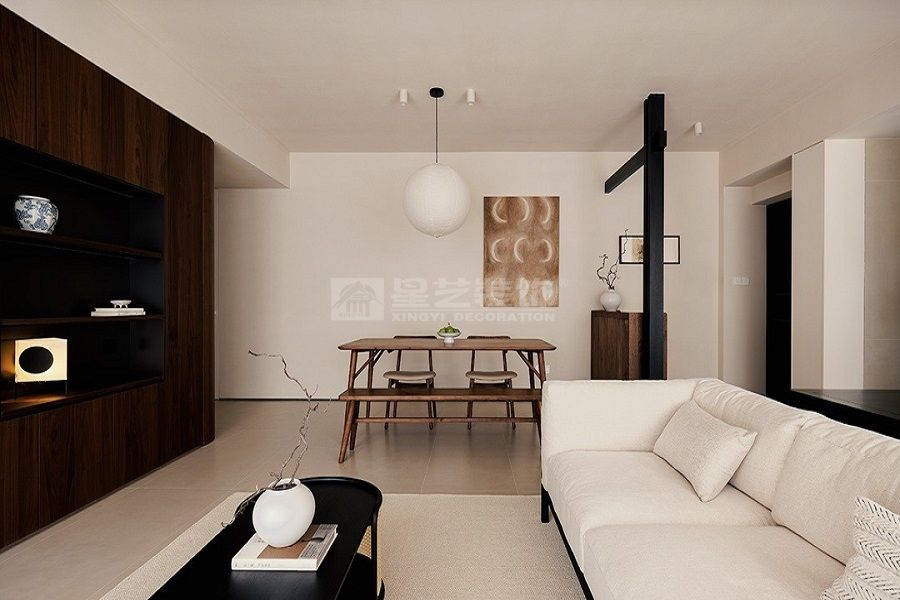 营造禅意、雅致、内敛的氛围,多用留白、借景、虚实对比,而非堆砌字画、屏风等符号。