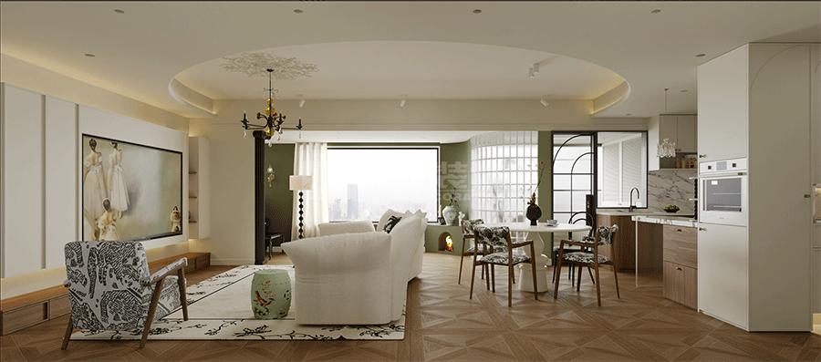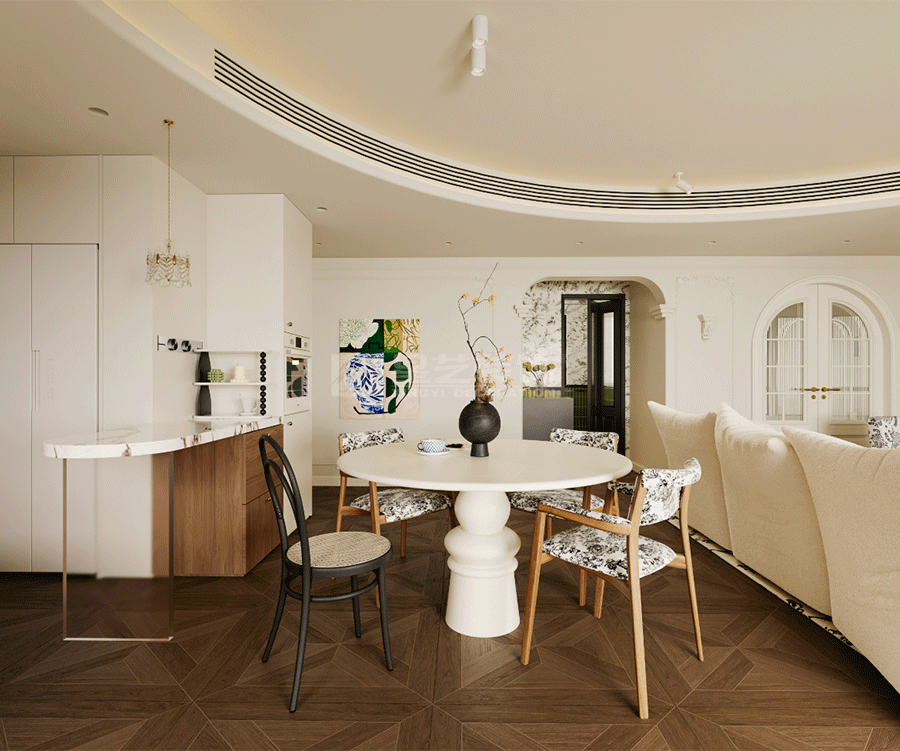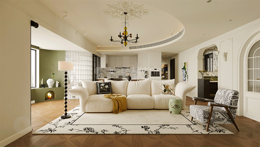 法式浪漫撞色中古质感,弧形线条搭配复古肌理,在岁月感中藏温柔,打造慵懒有格调的居所。