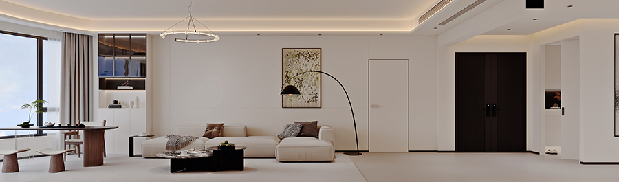 本案以现代极简为基底,奶油质感为肤感,打造通透、松弛且极具高级感的高端居住空间。