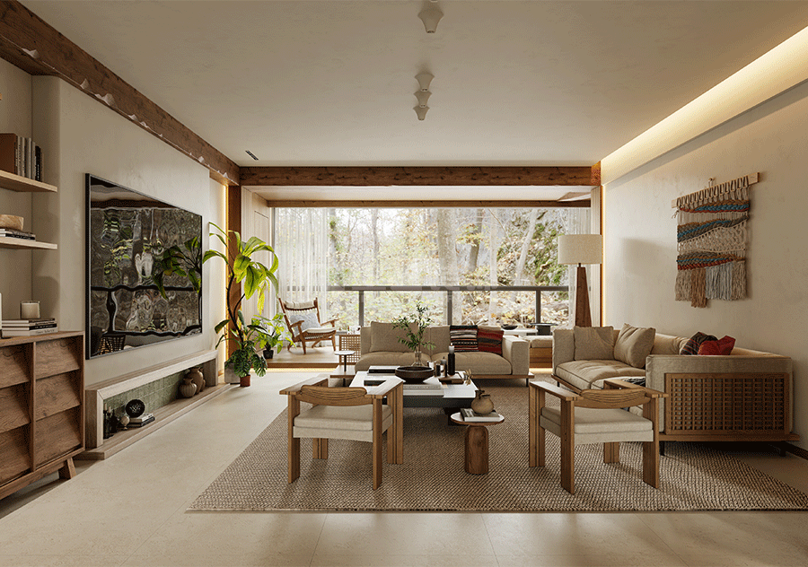 以自然为灵感,用质朴材质与柔和光影,打造松弛舒适、回归本真的生活空间。